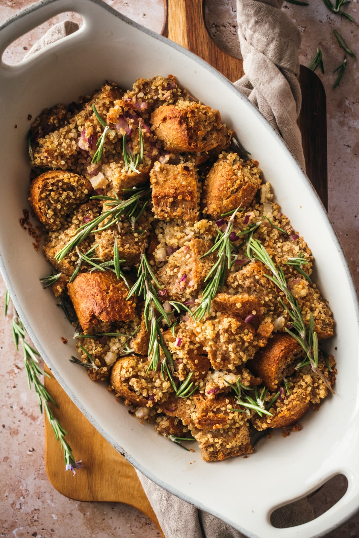 - Quinoa: Packed with protein, quinoa makes this vegan stuffing recipe a meal all on its own.