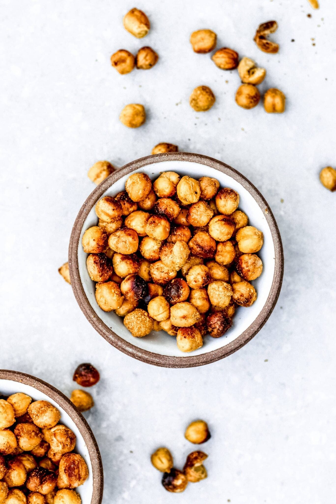 Once I figured out how to make roasted garbanzo beans and how easy it is, I fell in love. Now, this cheesy roasted chickpea recipe is one of my go-to vegan snacks.