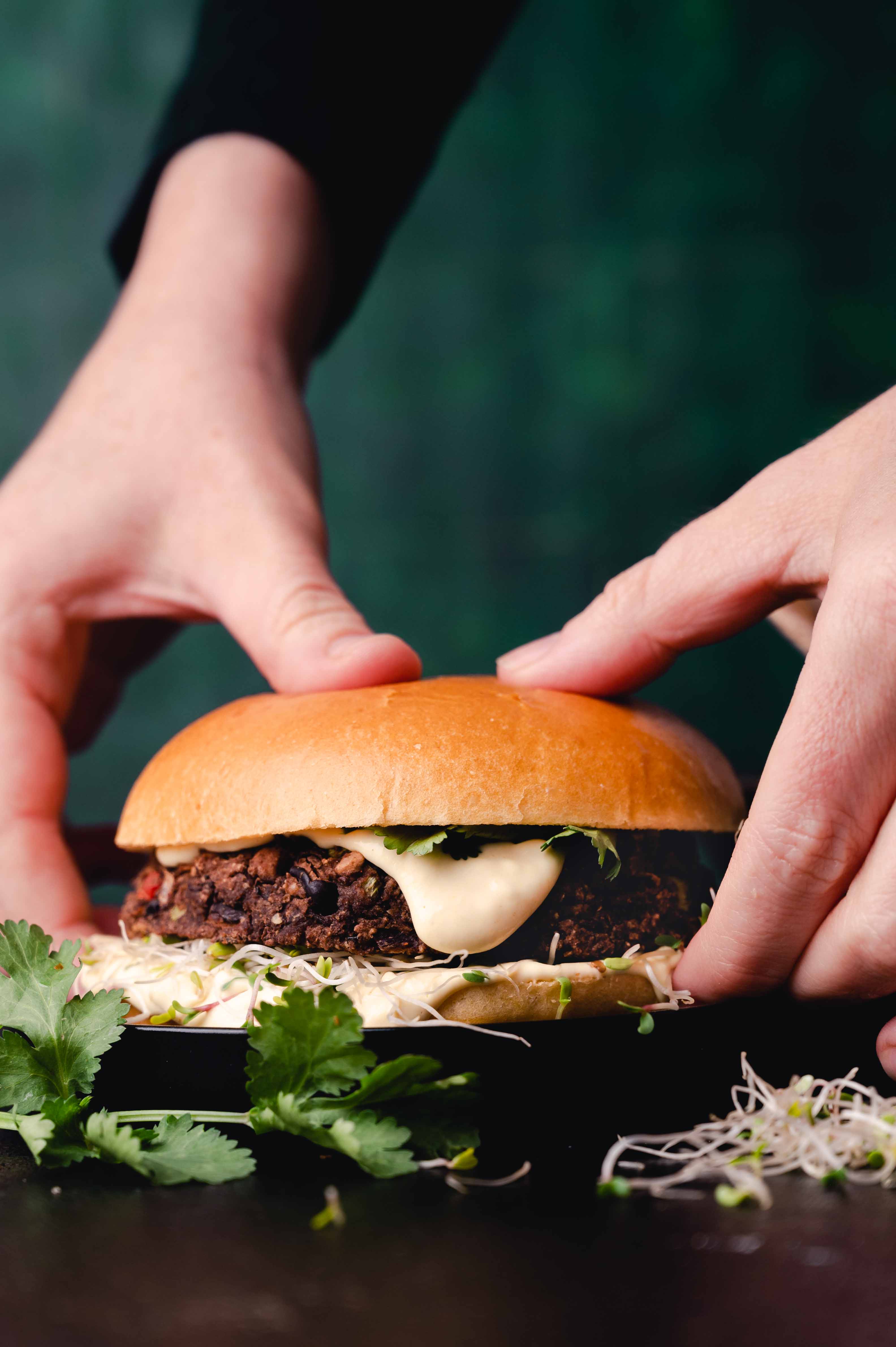 A flavorful black bean burger that's hearty and satisfying. The rich, savory taste and robust texture make it a favorite for plant-based eaters.