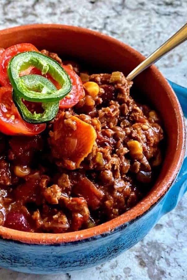 Vegan chili is full of such complex flavors that even non-vegans won’t believe there’s no meat. Plant-based proteins and delightful aromatics come together for a hearty, savory meal that can’t be beat!