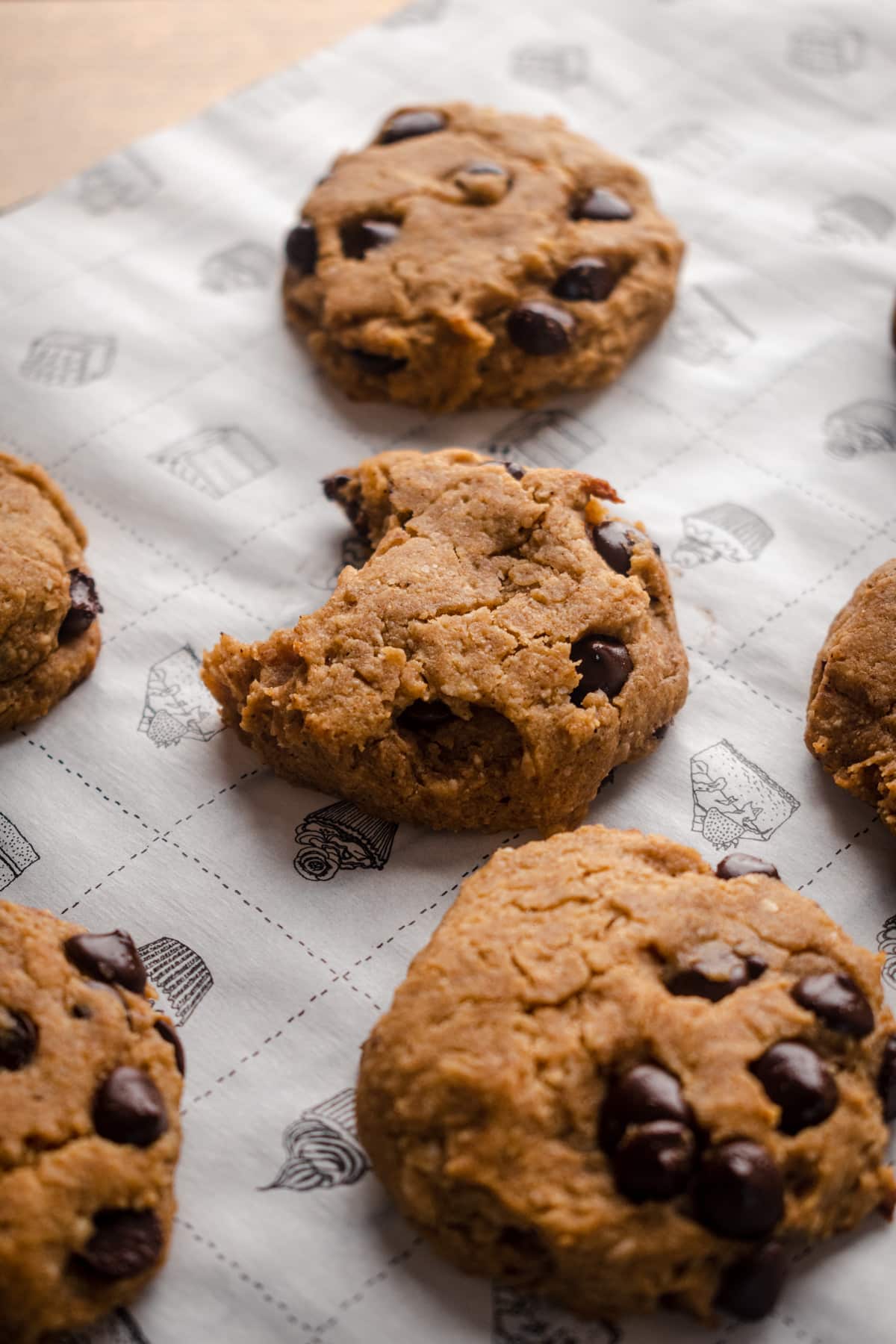 The perfect fluffy vegan chocolate chip cookies that are sweet as can be. This winter cookie recipe will take your can of pumpkin to the next level!