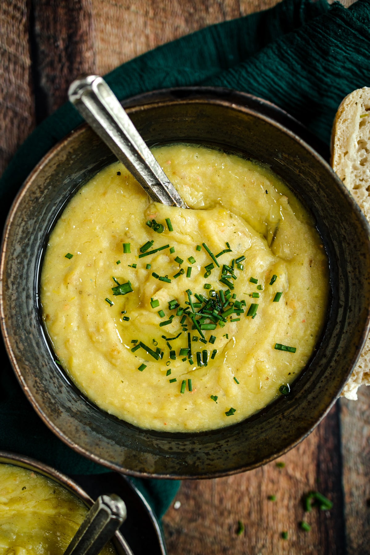Perfectly smooth butternut squash soup with coconut milk. It's loaded with flavor and won't disappoint.