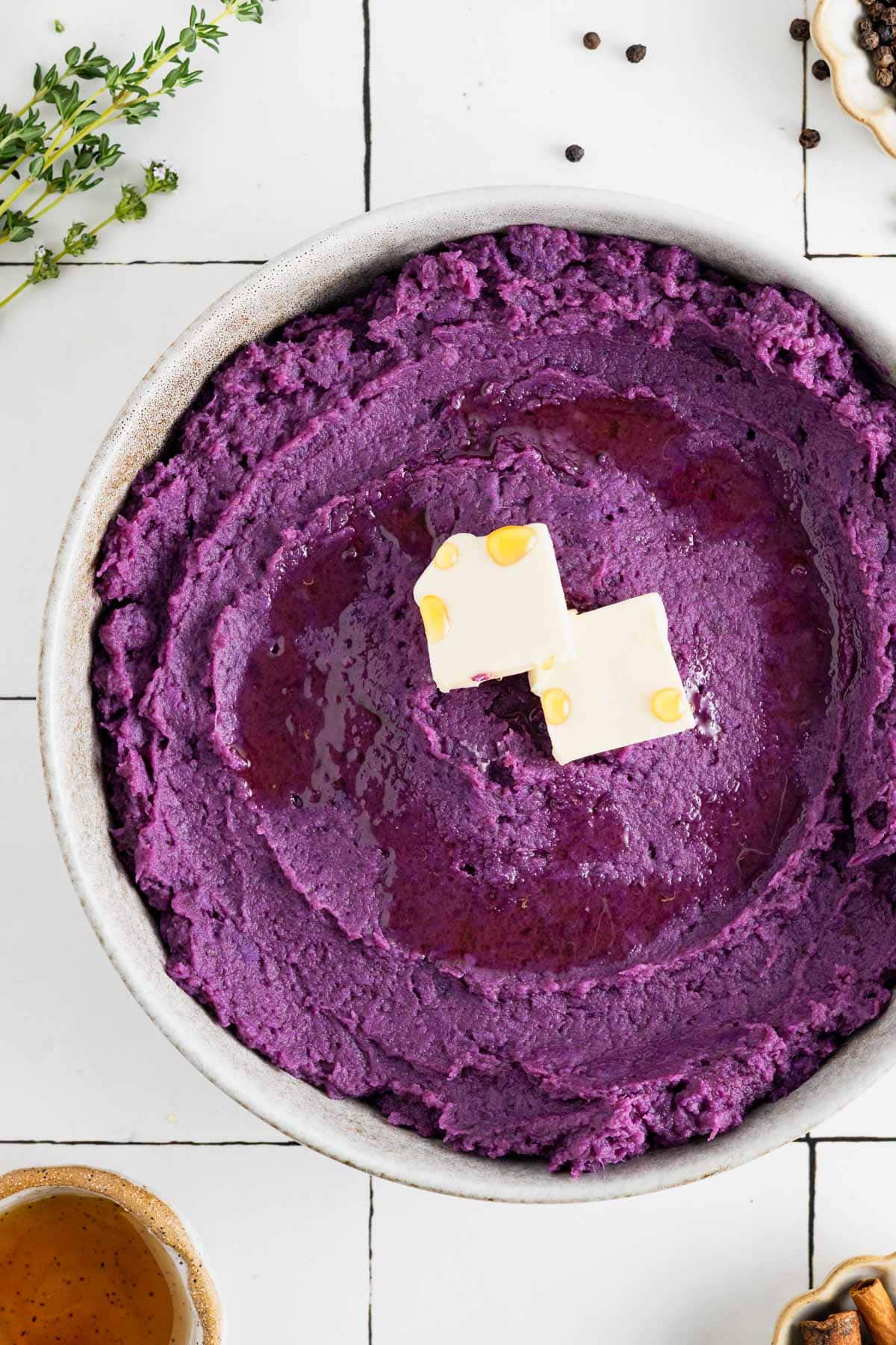 Switch things up with maple whipped sweet potatoes using purple sweet potatoes. If you’re looking for a standout side dish for the holidays or have found a bounty of purple sweet potatoes at the store, this recipe is the perfect choice!