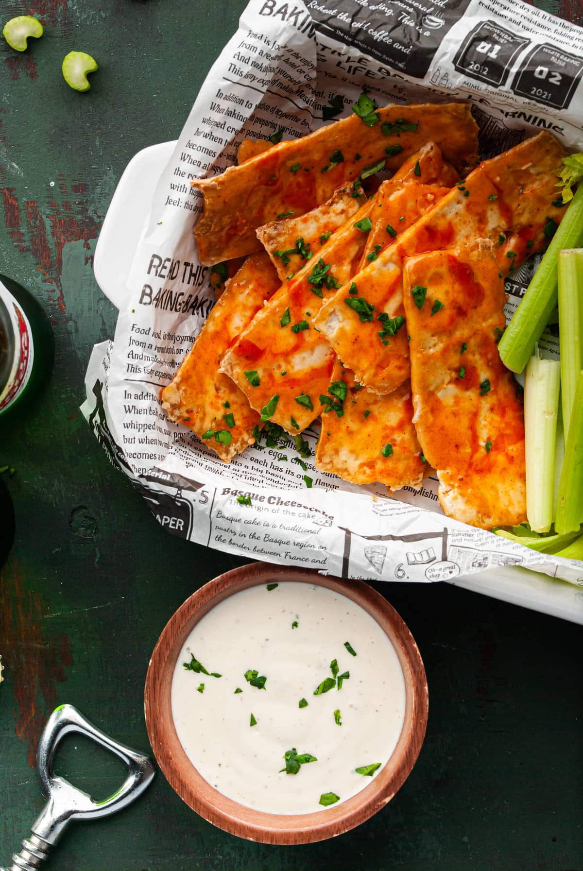 You’ll need to use a tofu press or press it out yourself. Without a tofu press, you can wrap the block in paper towels and then set a cast iron skillet or another heavy object on top of it. While it’s best to prepare this about an hour in advance, even just 30 minutes will help significantly.